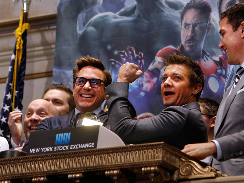 Los actores acuden a la Bolsa de Valores de Nueva York, para abrir la semana financiera, como parte de la promoción de la nueva cinta
