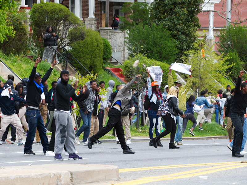 Varias personas resultaron lesionadas este lunes tras lo enfrentamientos entre la Policía y manifestantes que protestan por la muerte de un hombre afroamericano en calles de Baltimore, Estados Unidos.
