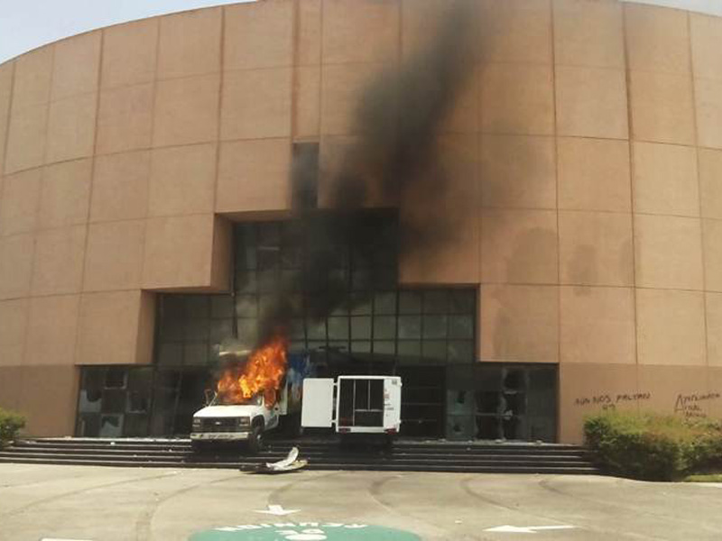 Luego de que quemaran camionetas repartidoras, los normalistas huyeron hacia el sur de Chilpancingo; policías federales los persiguieron durante 10 minutos, portando equipo antimotín, sin embargo, no hubo detenidos