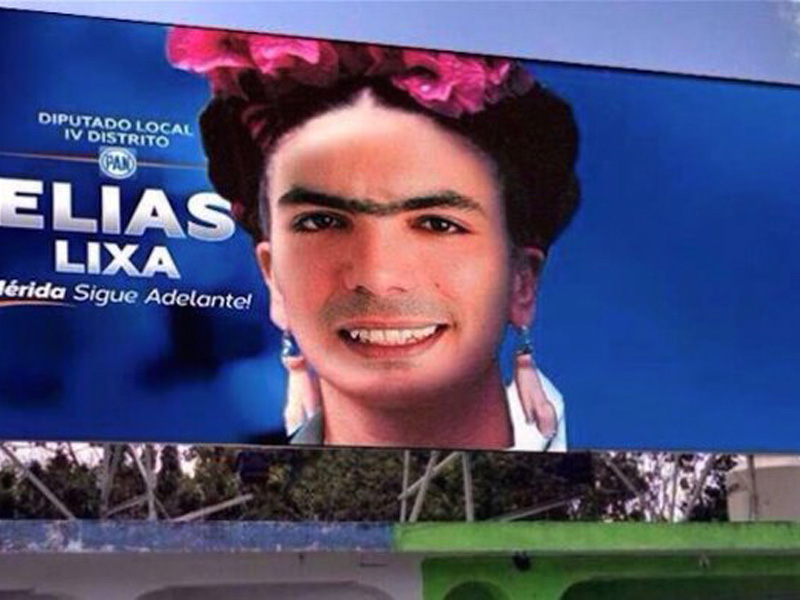 El parecido en las cejas provocó que alguien usara un programa de edición de fotografía para alterar la imagen del político, como si apareciera en un espectacular