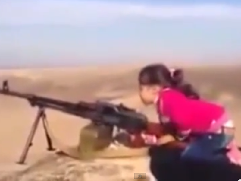 Con el arma en mano una niña kurda, de unos 7 años de edad, mira a la cámara que la graba y dice que está 'disparando contra el Daesh', el acrónimo que usan en los países árabes para denominar al Estado Islámico