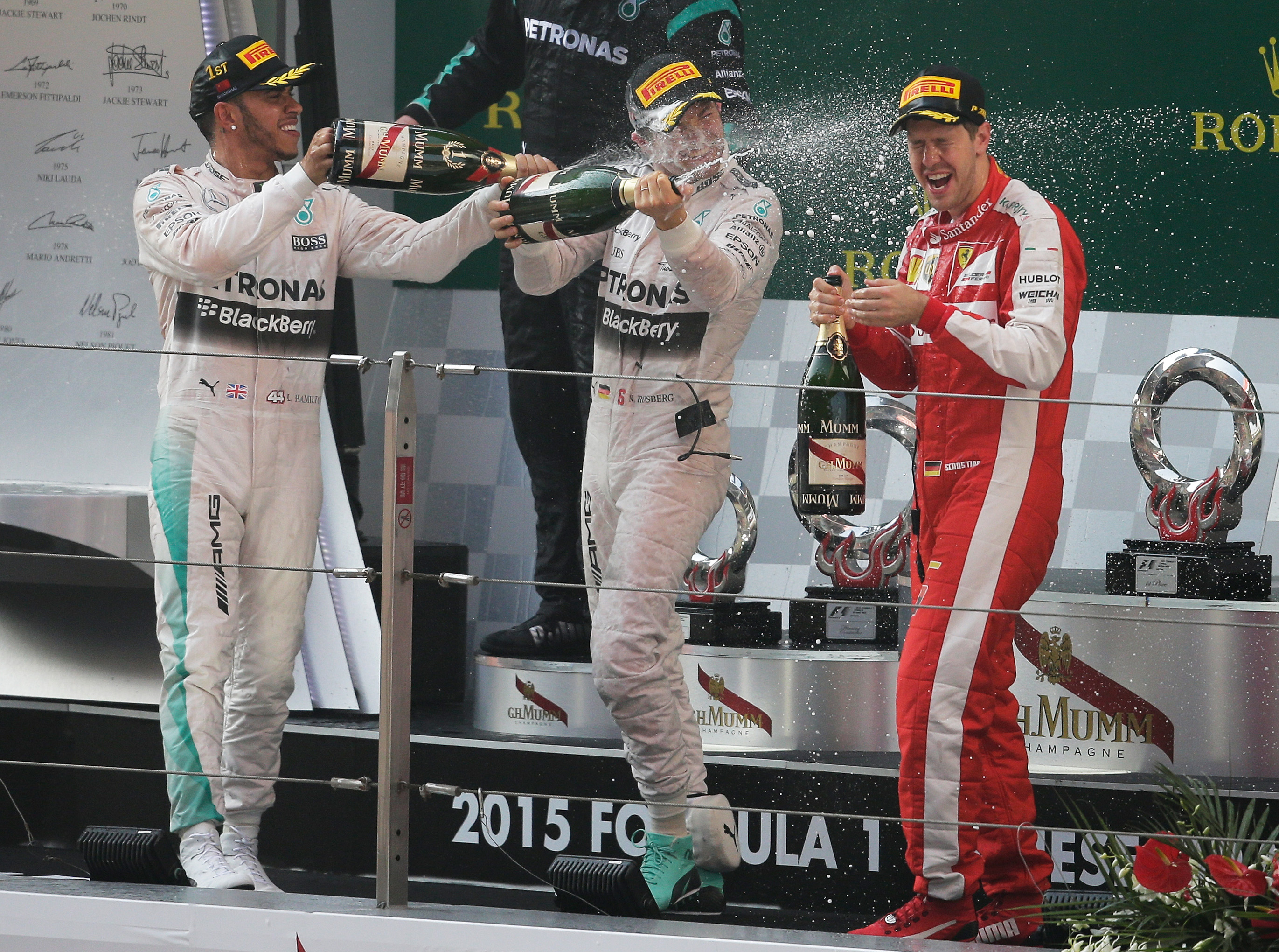 El compañero de Hamilton en Mercedes, el alemán Nico Rosberg, fue segundo y su compatriota Vettel, tercero
