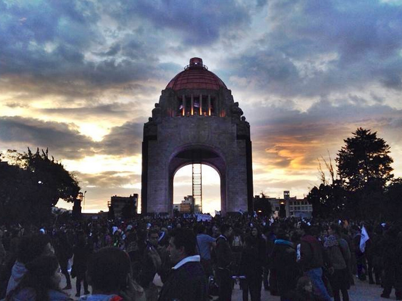 En un mitin frente al Monumento a la Revolución, los familiares de los normalistas desaparecidos en Iguala llamaron a los mexicanos de abstenerse de participar en los comicios como forma de protesta