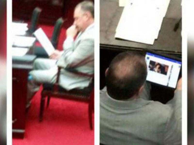 La foto publicada en Facebook por un usuario fue acompañada por un comentario en el que cuestionaba el trabajo del legislador abiazul, haciendo referencia al poco respeto que demostraba al ignorar la sesión aprovechando el tiempo para ver fotos de mujeres
