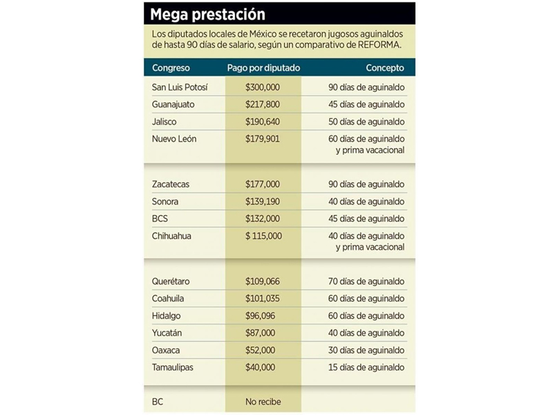 Los legisladores locales de distintos estados no cantan mal los villancicos. Los aguinaldos que cobraron este diciembre oscilan entre los 80 mil -los peores- y los 300 mil pesos -los mejores.