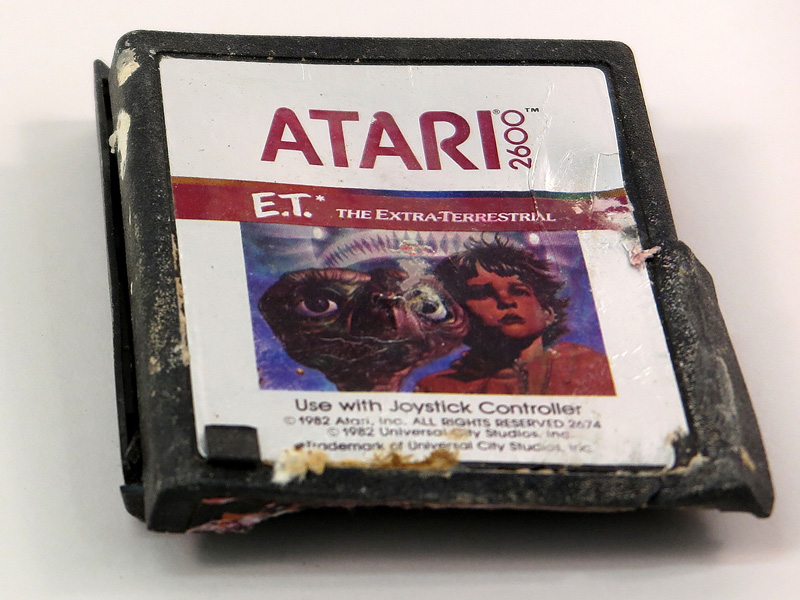 Uno de los cartuchos del videojuego "E.T." para Atari que fueron desenterrados este año de un basurero de Nuevo México fue agregado a la colección sobre historia de los videojuegos del Smithsonian.