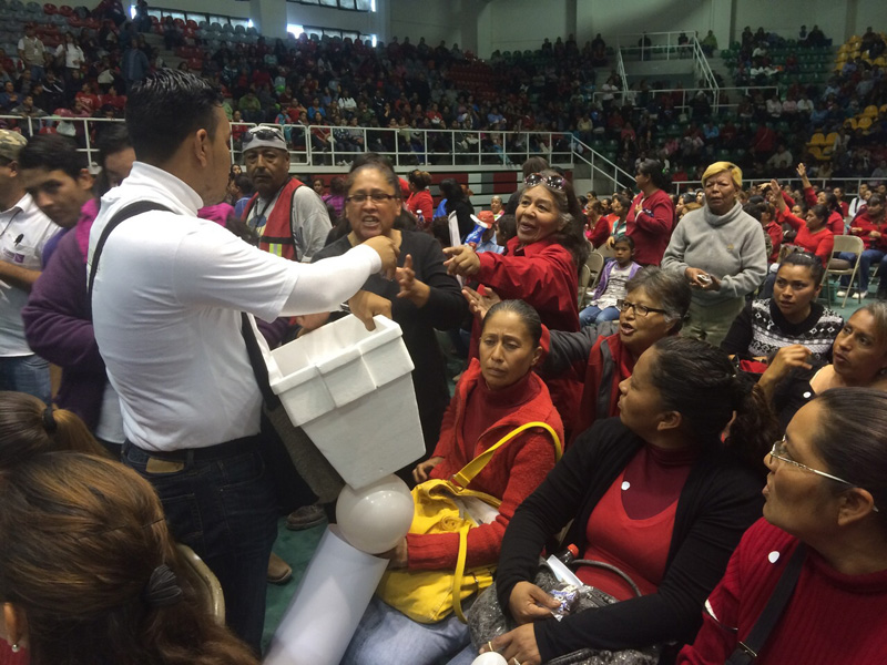 Los acarrean para estar con Rosario Robles; empiezan a irse y les reparten Doritos y yogur