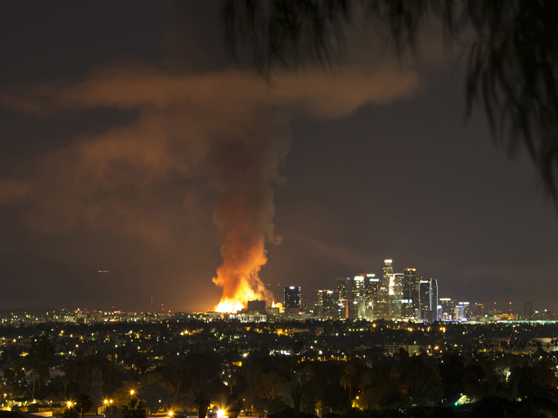 Incendios registrados esta madrugada en el centro de la ciudad obligó a cerrar carreteras y dejó la zona cubierta de cenizas y humo