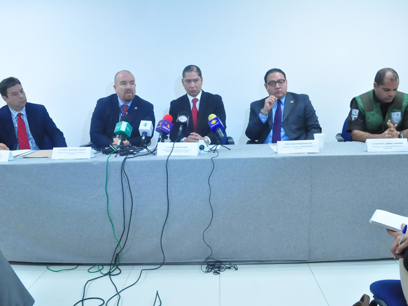El delegado regional de Prodecon, Antonio Pérez Ruiz, (cuarto de izquierda da derecha), en conferencia del SAT.