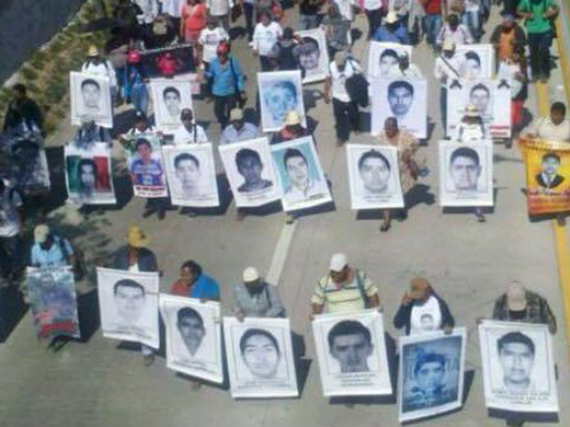 En marcha conmemorativa por el aniversario luctuoso de Lucio Cabañas y la exigencia de encontrar con vida a los 43 normalistas, manifestantes utilizaron resorteras para apredrear el recinto