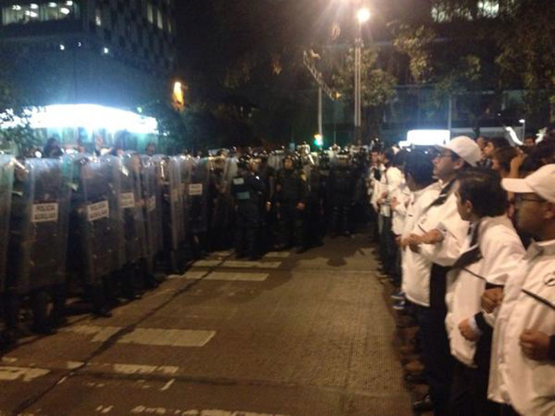 Loas manifestantes denunciaron con fotografias en Twitter que alrededor de un centenar de granaderos encapsularon al colectivo y los golperaron; hay tensión en los alrededores del Senado