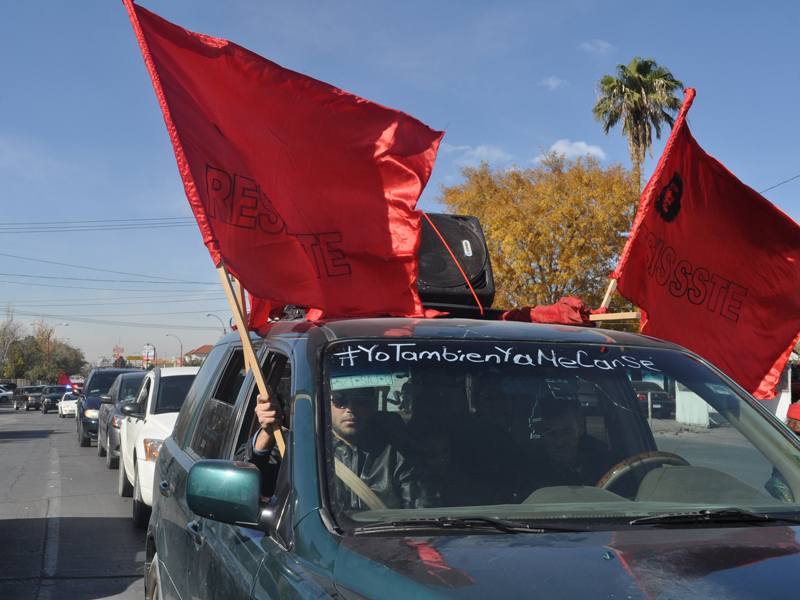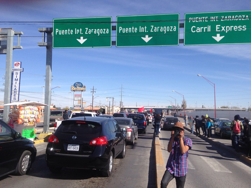 El contigente de docentes en conjunto con estudiantes partió del Parque Borunda hacia el Puente Internacional Zaragoza para protestar por la desaparición de los 43 normalistas de Ayotzinapa