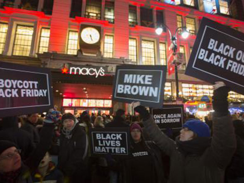 Unas dos docenas de personas entonaron "Sin justicia no hay paz, abajo la policía racista'' y "Abajo el Viernes Negro''