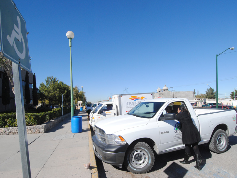 Una unidad a cargo de Elsa Hernández, directora de Cecytech, fue captada cuando se estacionaba en una área destinada para personas con discapacidad, justo enfrente de las oficinas de Gobierno del Estado.