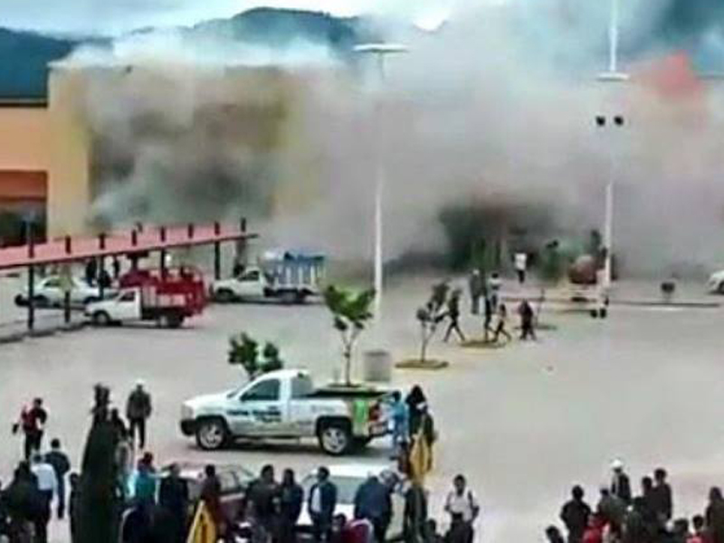 A través de un video divulgado en las redes sociales, se aprecia como protestantes queman la fachada del negocio en San Cristobal de las Casas.