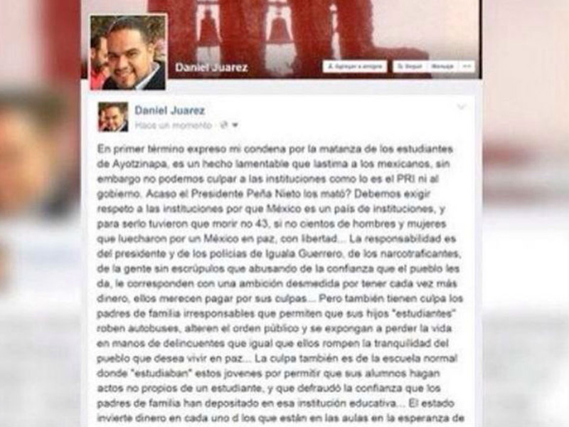 El director del Colegio de Bachilleres de Hidalgo, quien además es delegado político del PRI en el municipio de Calnali, aseguró que para que México llegara a ser un país de instituciones “tuvieron que morir no 43, sino cientos de hombres y mujeres”