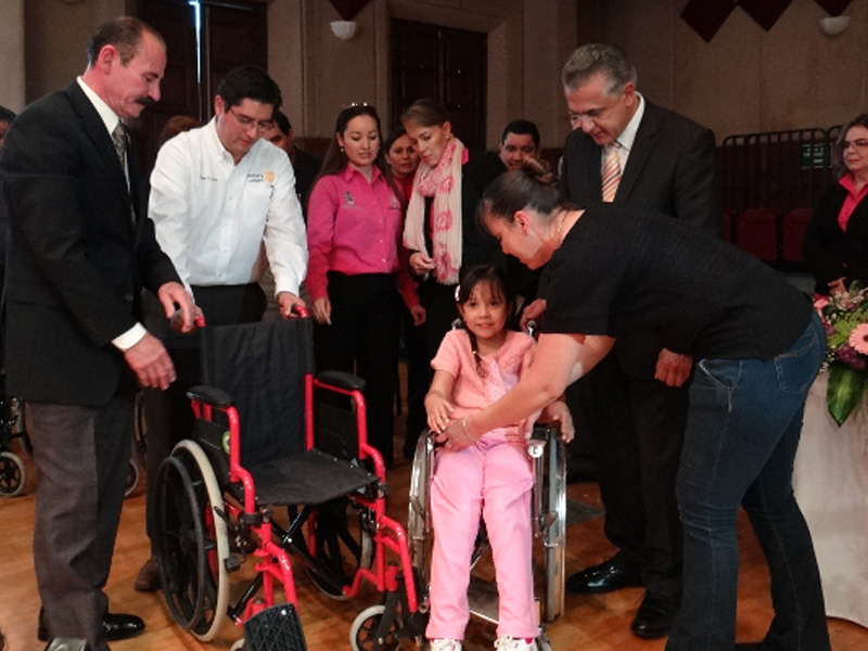 El Club Rotario junto con el Desarrollo Integral de la Familia entregaron 44 sillas de ruedas a niños de escasos recursos, esto como parte del compromiso que tienen los integrantes del club y el DIF por la comunidad juarense.