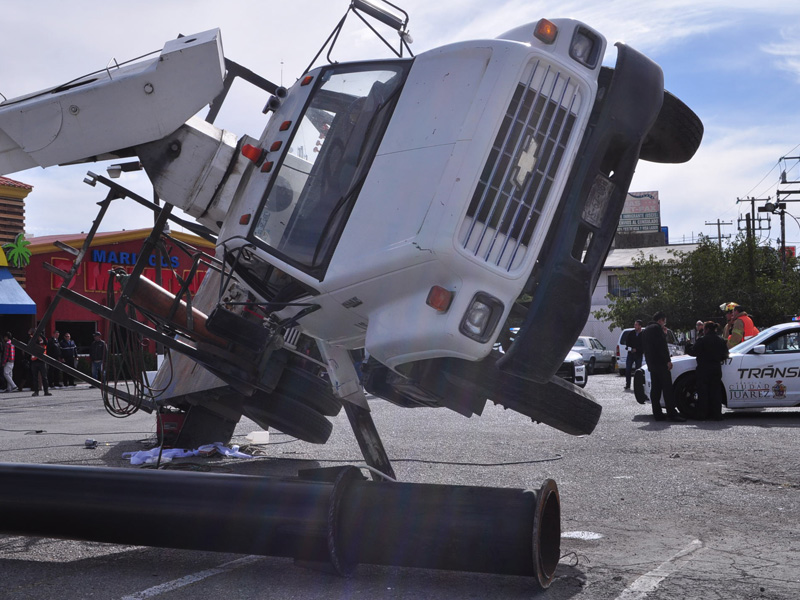 Una grúa se volcó hace unos minutos mientras colocaba un panorámico en el cruce de la avenida Ejército Nacional y López Mateos. No se reportan personas heridas, sólo daños materiales.