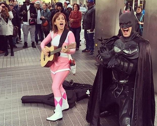 La actriz salió a las calles de Toronto con una guitarra y la indumentaria del recordado personaje tras lograr el financiamiento para su película.