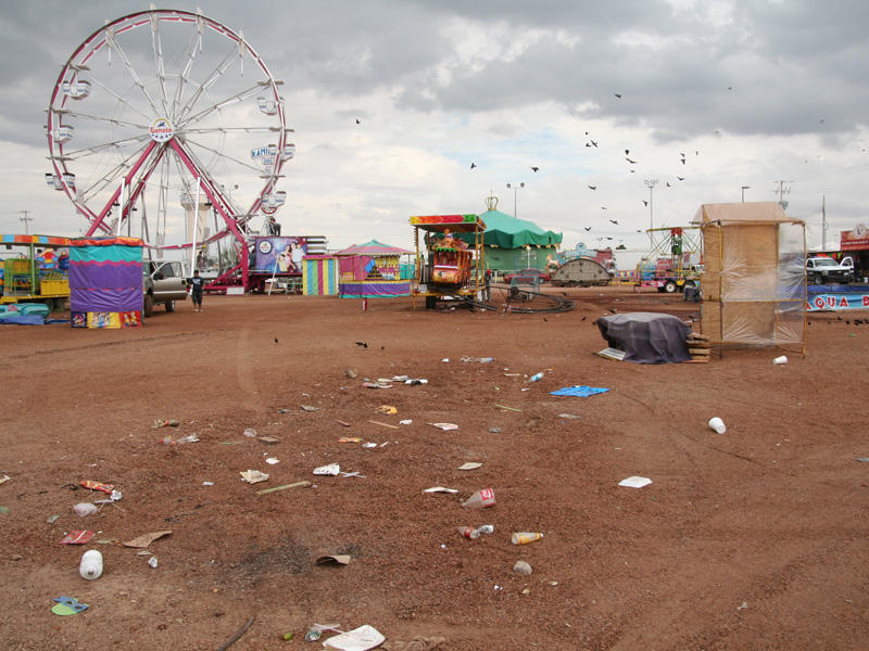 Tras la clausura el domingo pasado de la Fiesta Juárez 2014, los trabajos de limpieza iniciaron en la Plaza de la Mexicanidad.