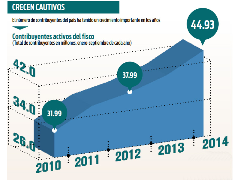 Los nuevos contribuyentes a las filas del SAT se deben en buena medida a una mayor fiscalización y al Régimen de Incorporación Fiscal