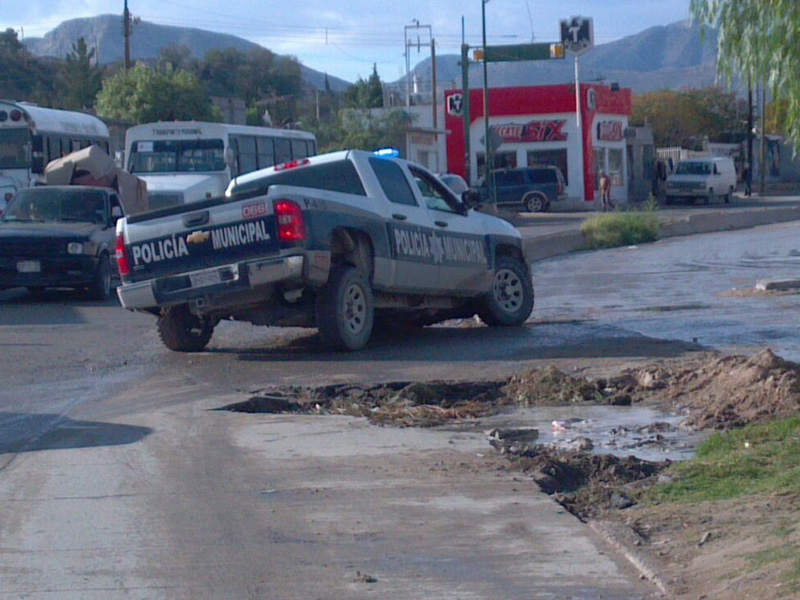 Agentes preventivos que atendían un llamado de emergencia cayeron con su unidad en un enorme bache.