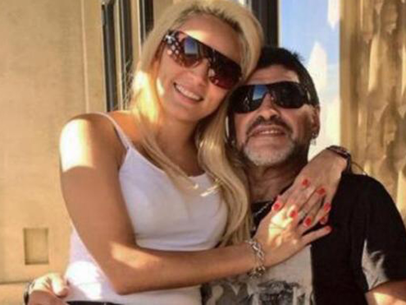 Maradona, quien aparentemente está bebiendo, le reclama a una mujer que esté viendo su teléfono celular.