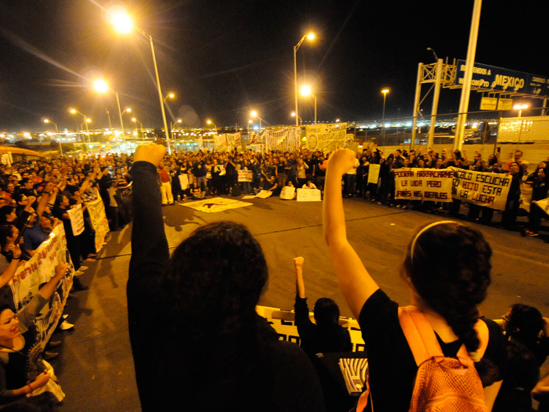 Estudiantes, ONGs y ciudadanos ‘toman’ puente Libre por la desaparición de 43 normalistas