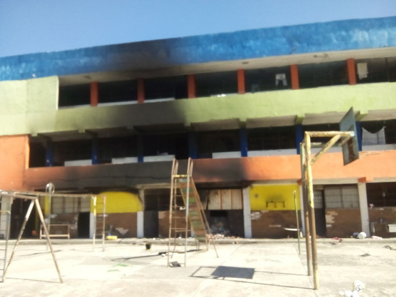 Autoridades de Zamora informan que el fuego se registró en la parte baja del edificio y consumió el ala derecha que antes estaba destinada a los dormitorios