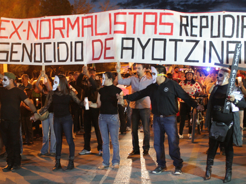 Cientos de activistas toman puente ‘libre’ por medio hora para protestar contra la matanza de Ayutla