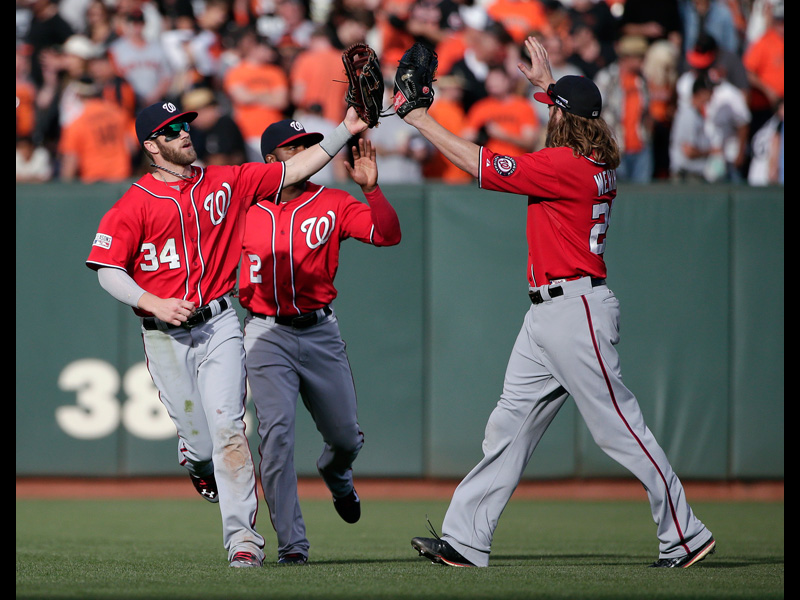 Los Nacionales sobrevivieron en su primer juego en San Francisco gracias al trabajo del pitcher Doug Fister y el palo de vuelta entera de Bryce Harper
