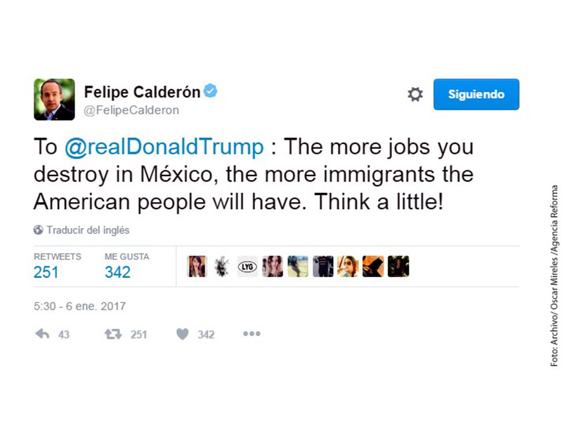 Aunque ayer el Presidente Enrique Peña Nieto acusó a su Administración de haber mantenido un precio artificial del combustible, Felipe Calderón le respondió, pero a Donald Trump