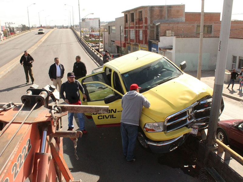 Un arbotante, detuvo el vehículo justo en la valla de contención y evitó la caída, desde una altura aproximada de diez metro