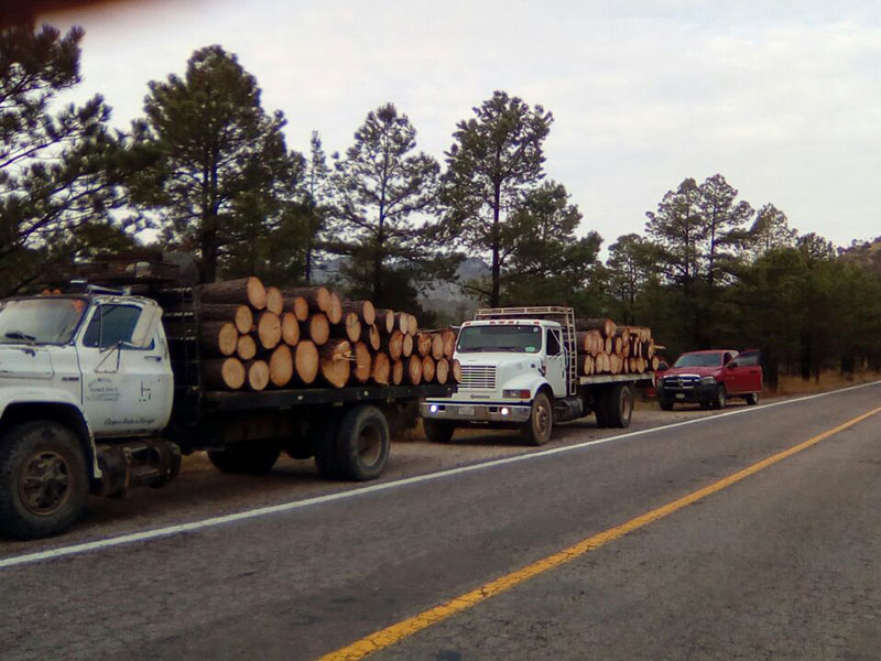 Trasladaban madera de pino en rollo sin contar con permisos de corte y venta; los arrestan en dos camiones 'troceros' esta madrugada