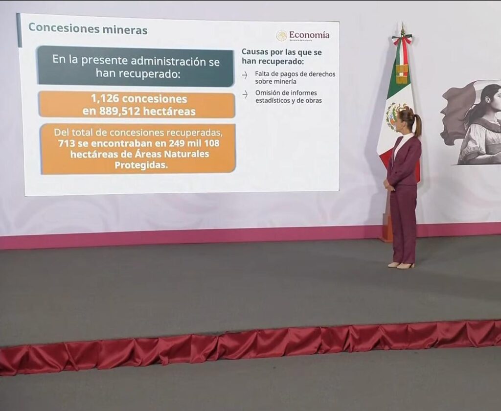 Durante la conferencia matutina, el secretario de Economía Marcelo Ebrard y el jefe de la Unidad de Coordinación de Actividades Extractivas, José Fernando Aboitiz, detallaron que se han recuperado un total de 1,126 concesiones mineras a nivel nacional, equivalentes a 889,512 hectáreas devueltas al control del Estado mexicano.