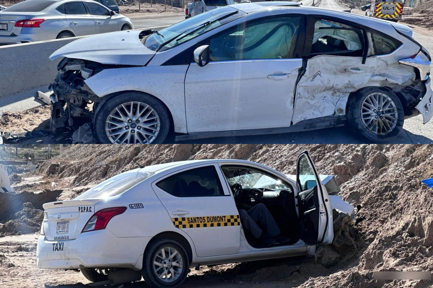Según los primeros reportes, en el vehículo Ford Focus color blanco se observaba un doble impacto, uno de ellos en su puerta trasera izquierda y el otro en su zona frontal, mientras que el taxi, perteneciente al sitio Santos Dumont, tenía el frente destrozado.