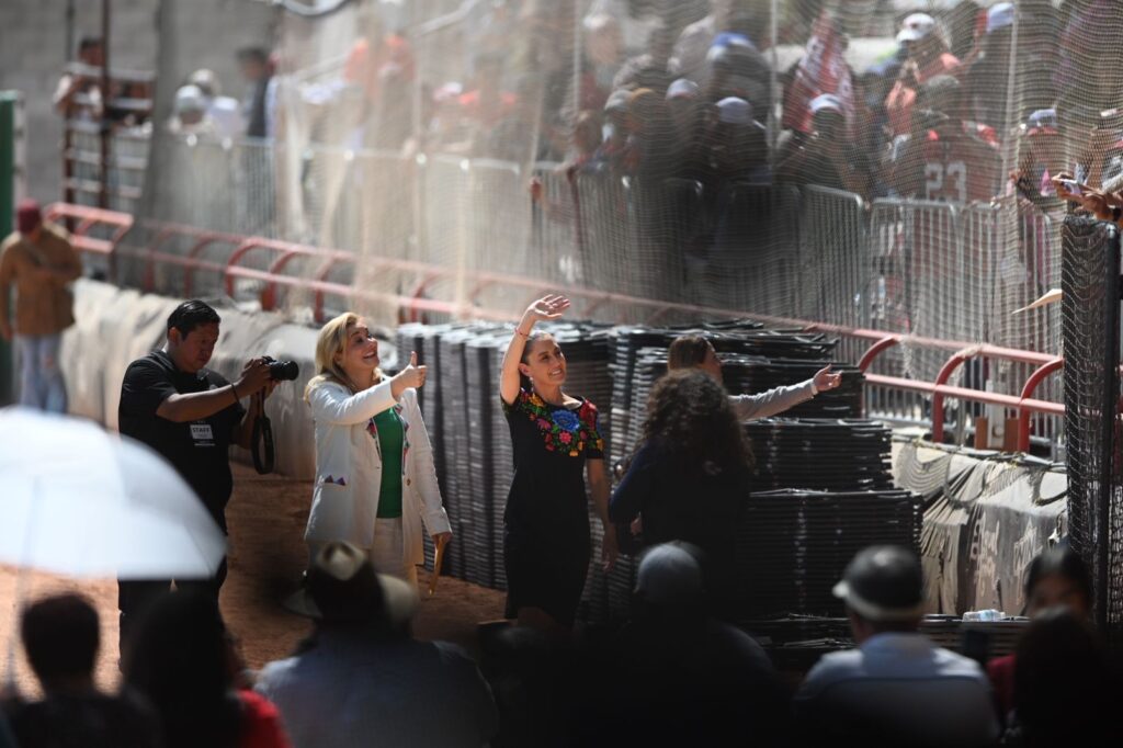 En compañía de la gobernadora Maru Campos, la presidenta llegó al Estadio Juárez, donde saludó a los presentes a minutos de iniciar su mensaje.