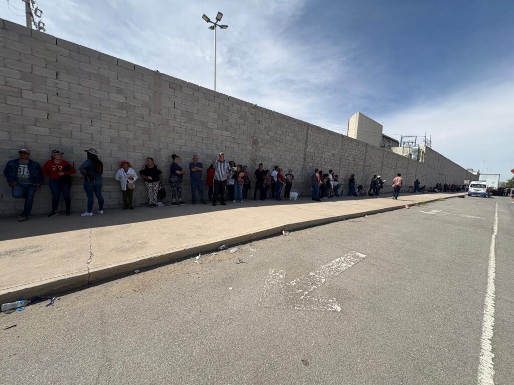 Antes de entrar, muchos se organizan en grupos; un contingente grande, integrado mayormente por mujeres, dijo provenir de Riberas del Bravo, desde donde salieron cuatro camiones a las ocho de la mañana.