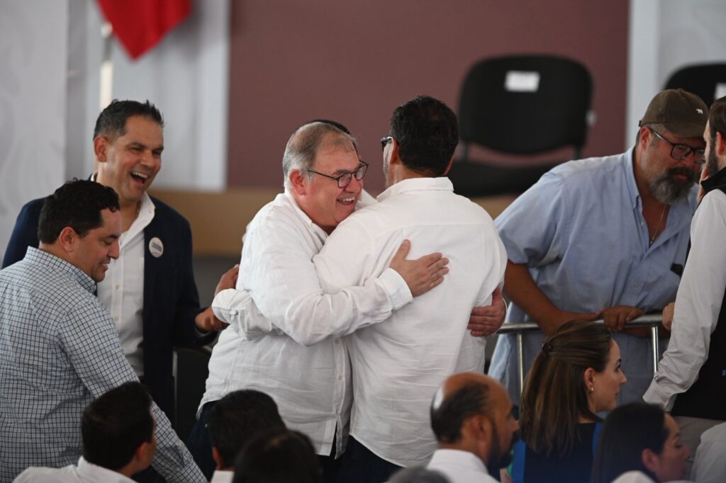 Panistas y morenistas se abrazaron efusivamente en los accesos, previo a la llegada de la presidenta.