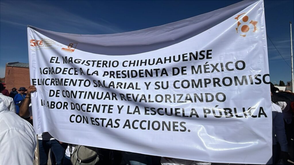 En medio del flujo de gente, también apareció el magisterio, que desplegó mantas en las que agradecen a la presidenta el incremento salarial y su compromiso de continuar revalorizando la labor docente y la escuela pública.