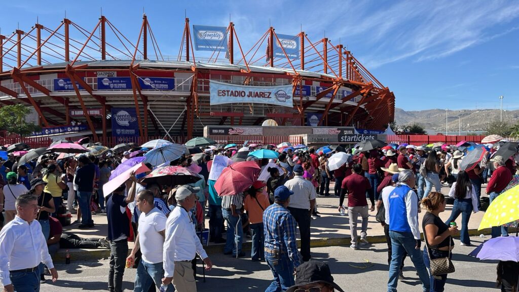 Cientos de personas ingresaron este viernes al Estadio de Béisbol Chihuahua Vive, mientras otras más esperan en el exterior, a dos horas de la llegada de la presidenta de México, Claudia Sheinbaum Pardo.