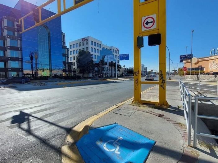 Se trata de una rampa que ya es ejemplo nacional de lo que no debería ser, la cual se ubica en el crucero de la calle Pedro Rosales de León y avenida Tecnológico. Una zona que tiene mucha movilidad peatonal por los usos de suelo comercial y por los servicios de la ruta troncal de transporte.