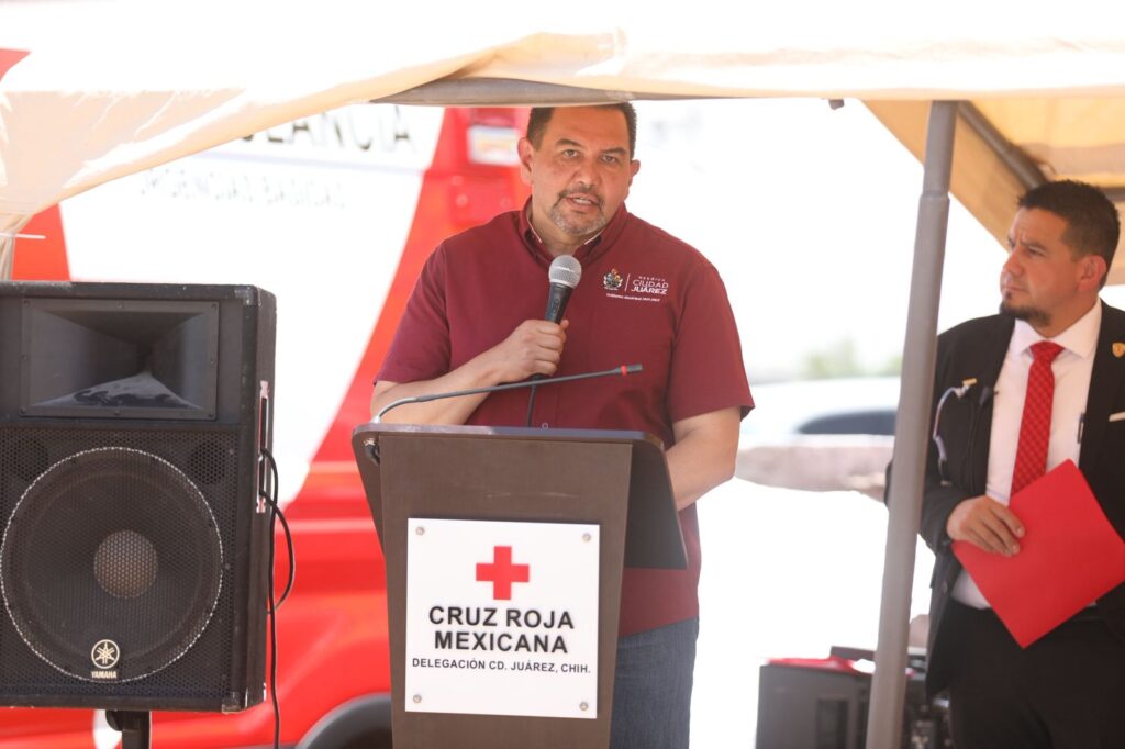 El presidente municipal, Cruz Pérez Cuéllar, acudió al evento en el que aprovechó para agradecer a la Cruz Roja Mexicana delegación Chihuahua y a la Fundación del Empresariado Chihuahuense (Fechac), por el beneficio que este proyecto traerá a la comunicad.