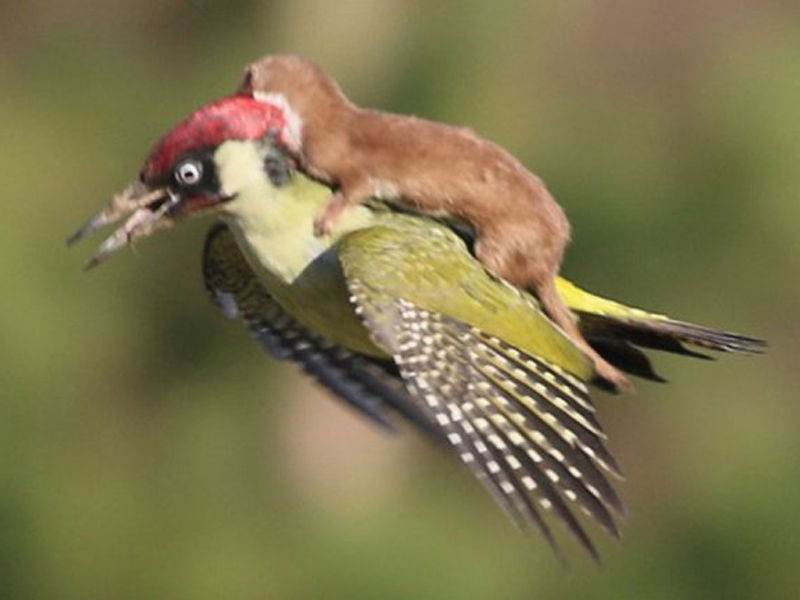 La comadreja que voló sobre un pájaro carpintero Podría ser una escena sacada de una novela pero no, es la vida real. Y de ahí que lo más probable es que no haya una aventura de por medio, sino una lucha a muerte Por Agencias