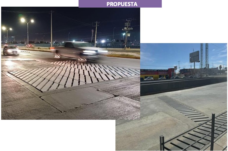 Al igual que en la obra de Pradera Dorada, se colocarán rejillas nuevas tipo canal y se hará la instalación de marcos con anclaje adecuado para soportar cargas vehiculares y ajuste de nivel para evitar hundimientos o sobresalientes.