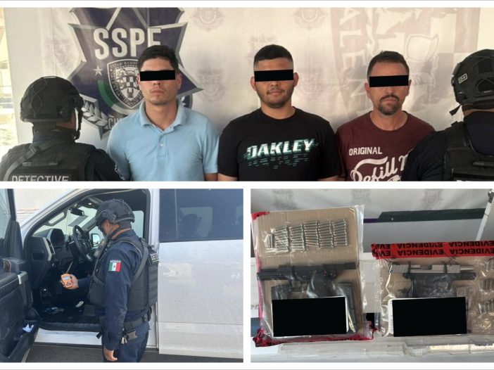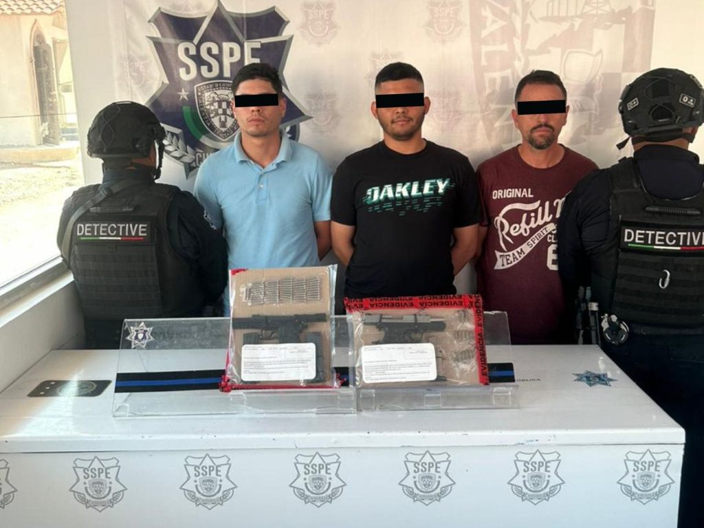 Tras los trabajos policiales, los agentes lograron capturar a los sospechosos, a quienes identificaron como Efraín M., Francisco E. y Ricardo P., a quienes se les aseguró un vehículo, dos armas de fuego, tres cargadores y 45 municiones útiles de distinto calibre, añade el comunicado.