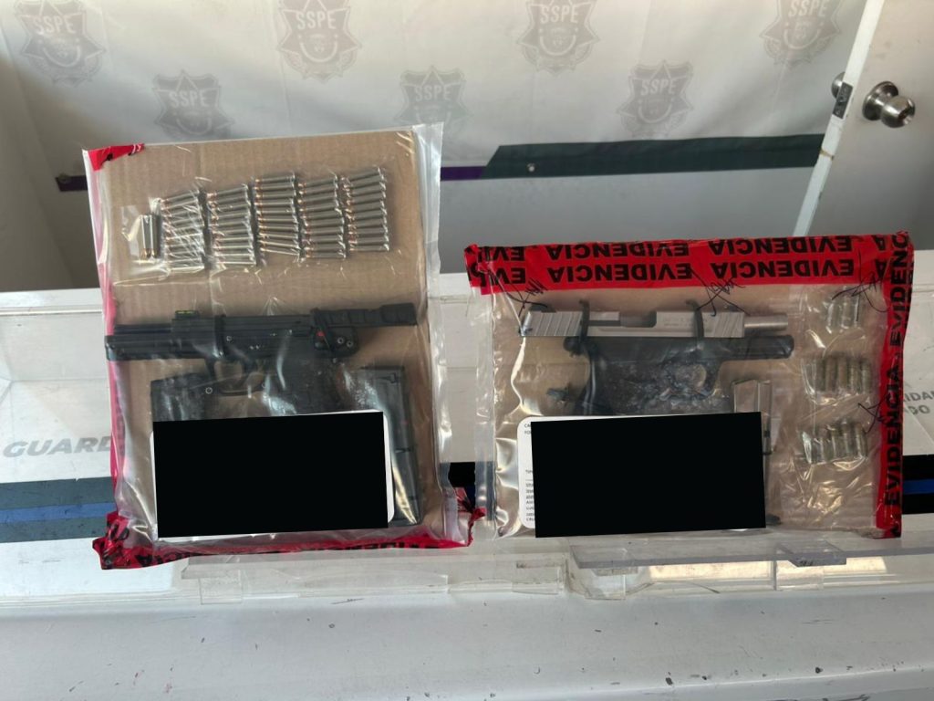 Al verificar el número de serie de la camioneta en la base de datos de la Plataforma Centinela, se confirmó que el vehículo tenía un reporte de robo. Por lo tanto, tanto la camioneta como las armas incautadas y los detenidos fueron entregados a las autoridades del Ministerio Público de la Fiscalía General del Estado (FGE), se indicó.