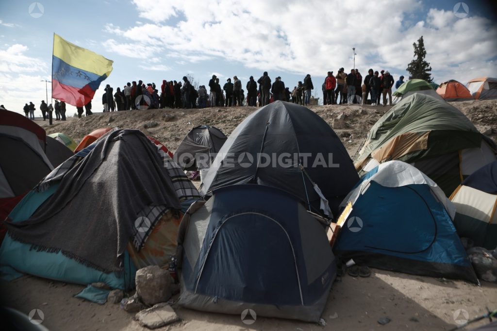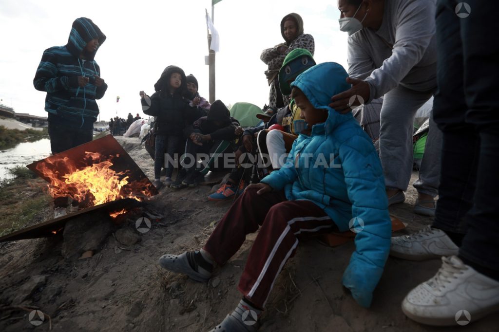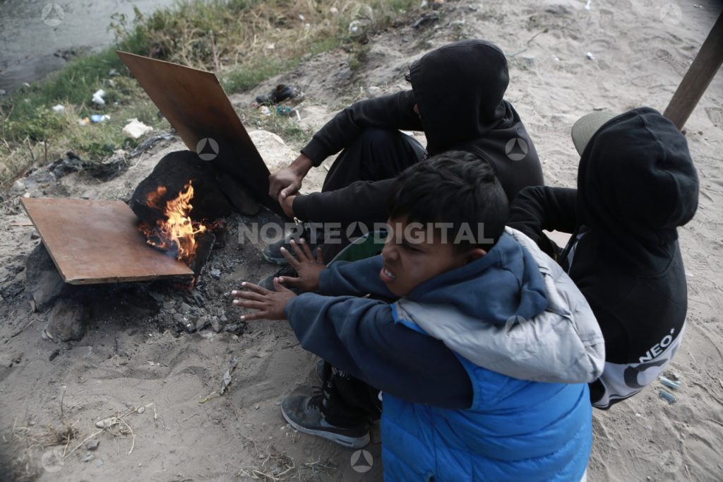 Como sus esperanzas, varias fogatas se encienden en el campamento que casi llega a las 400 tiendas de campaña entre el bordo y el cauce del río, no muy lejos del Puente Internacional Paso del Norte. No hay mucha madera. Lo que sea que encienda sirve para calentarse.