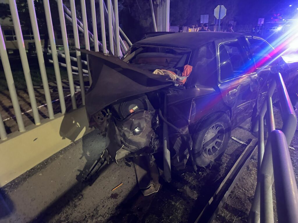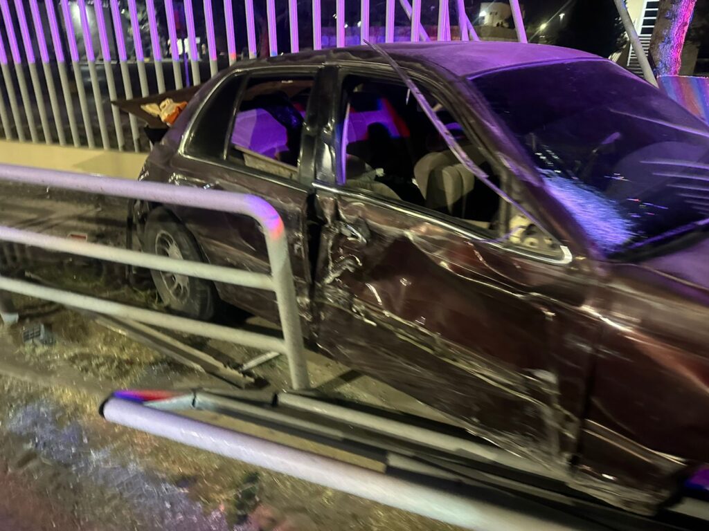 Un aparatoso accidente vial se registró esta madrugada en el cruce de las avenidas Universidad y Heroico Colegio Militar, dejando como saldo un lesionado y daños totales en vehículo así como una barda metálica del Instituto de Ciencias Sociales y Administración (ICSA) de la Universidad Autónoma de Ciudad Juárez (UACJ).