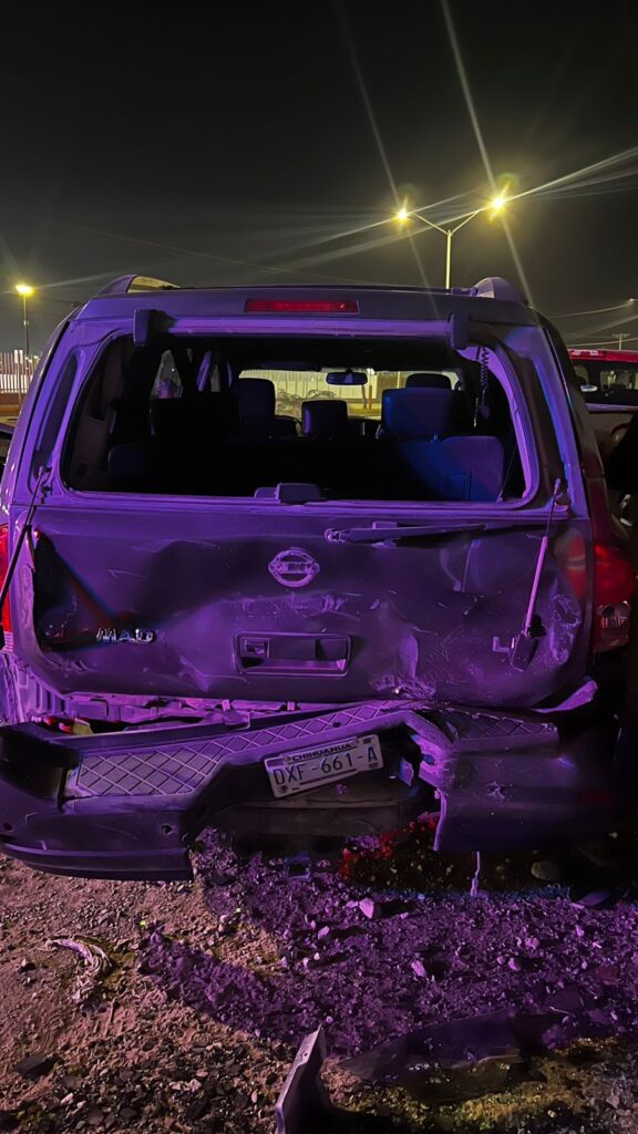 Por la fuerza del impacto, el Armada salió proyectado contra una GMC Sierra 2008, color rojo, con placas ZUD762B, también estacionada.
